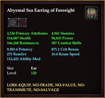 \aITEM 1988054074 694338261 0 0 0:Abysmal Sea Earring of Foresight\/a \aITEM 1988054074 694338261 0 0 0:Abysmal Sea Earring of Foresight\/a