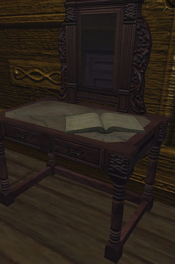 a memory of agony - a book laying on the vanity in the upstairs room on the right ( -22, 11, -31 ) Copy/waypoint -22.36, 10.50, -30.69.