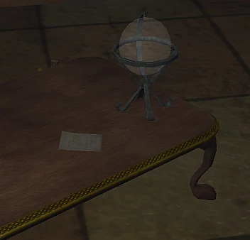 a memory of rivalry - a flapping letter on a table in the room to the right of the entrance ( -25, 1, -15 ) Copy/waypoint -25.29, 0.81, -15.08.