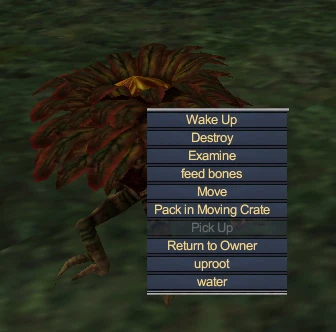 - The owner of the plant can right click on the plant and use the Stay command so it won't wander while it's being fed. If you have the right level of access in a house or guild hall (Trustee) you can tell a plant that you don't own to Stay using the same technique.