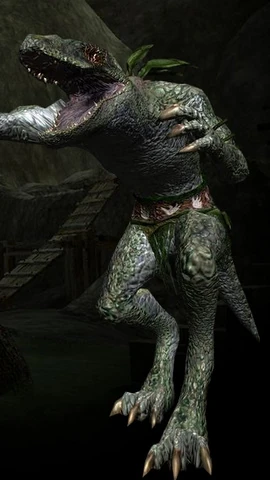 | The Alliz Raef Ew are an unusual tribe of lizardmen that has come to dwell within the Desert of Ro. They have adapted to this arid environment, using the unfortunate victims of the inhospitable desert as a means of survival. Their reason for being centers around their god, a mythical giant reptile. |