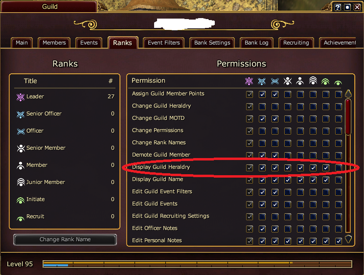Guilds may also specify which member ranks may change or display the heraldy by doing the following:
