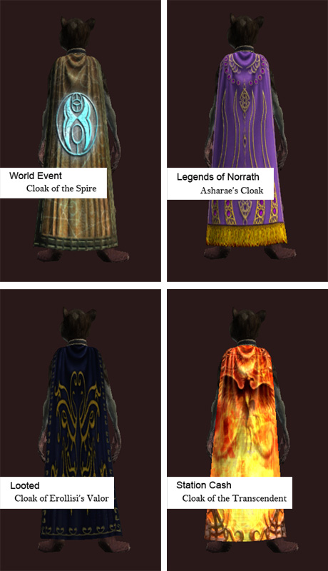 - Many of the cloaks from Legends of Norrath are quite attractive, making them sought-after vanity cloaks.