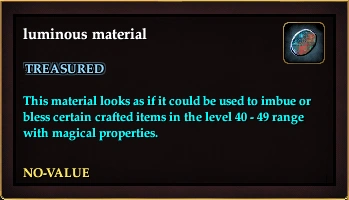 | This material looks as if it could be used to imbue or bless certain crafted items in the level 40 - 49 range with magical properties. | ||