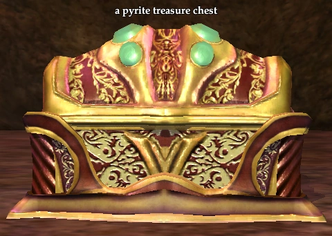 • polished pyrite key unlocks "a pyrite treasure chest", which rewards heroic quality gear.