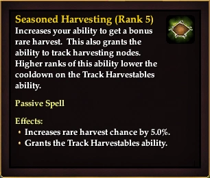 See Track Harvestables for more details on the benefits of the spell granted by adding enough points to Seasoned Harvesting.